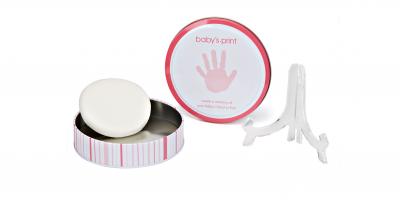 In dieser niedlichen Designdose können Sie den Fuss- oder Handabdruck Ihres Babys für immer aufbewahren. Enthalten ist alles was Sie benötigen, um einen Abdruck zu fertigen.