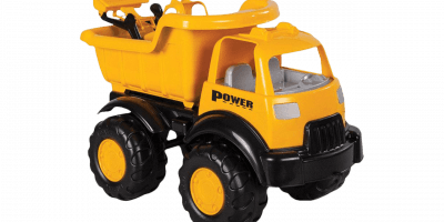 Dieser Spezial-LKW, welcher über eine Lademulde verfügt, bringt als kleines Extra einen in der Mulde verstaubaren Bulldozer mit. Der Bulldozer hat einen bedienbaren Frontlader, mit welchem anfallendes Baumaterial in den LKW geladen werden kann, und so die Baustelle sauber gehalten wird. Die Konstruktion der beiden Fahrzeuge aus widerstandsfähigem Kunststoff garantiert einen langanhalten Spielspass.
